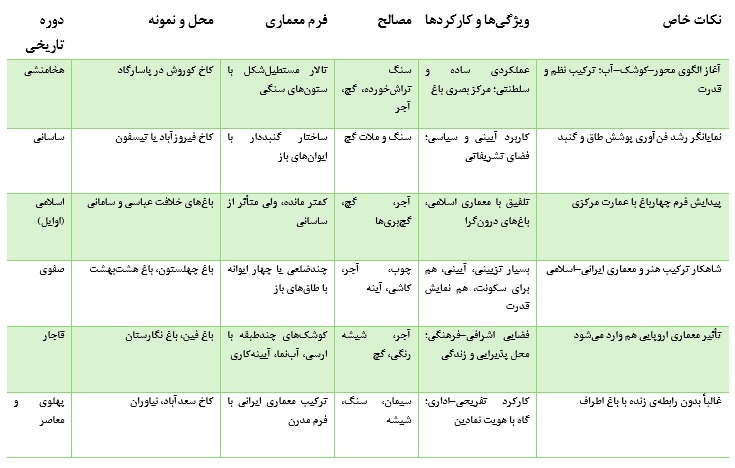 – تحلیل دقیق عناصر معنایی و نمادین در باغ ایرانی.