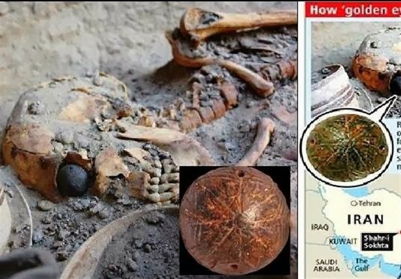 چشم مصنوعی: در یکی از قبور، بقایای یک زن باستانی یافت شد که در یکی از چشمانش پروتز مصنوعی نصب شده بود. این «چشم» از مادهای سبک (احتمالاً قیر طبیعی یا مواد مشابه) ساخته شده و روی آن لایه نازکی از طلا با طراحی عنبیه و پرتوهای خورشید حکاکی شده بود. حفاری و آزمایشهای باستانشناسی نشان داده که این پروتز در زمان زندگی فرد مورد استفاده بوده است. تاریخ آن تقریباً بین ۲۹۰۰ تا ۲۸۰۰ پیش از میلاد برآورد شده است.