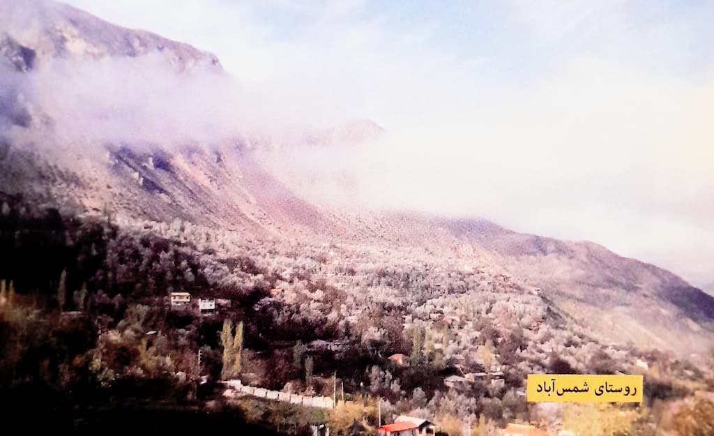 تابلوی روستای ییلاقی شمس آباد در این دو راهی نمایان است و شما وارد خیابان ولیعصر (عج) در این روستا می شوید. به محض عبور از پل سمت چپ، مسجدی را می بینید که کنار آن شورای اسلامی روستا قرار دارد و معمولاً کلید مسجد در دست آنان است. این مسجد ایوان کوچکی هم دارد که بسیار دل انگیز است. شیر آب در قسمت جنوبی مسجد و سرویس بهداشتی در غرب مسجد قرار دارد. وارد روستا که شدید، باید خود را به جنوب شرقی ترین بخش های روستا برسانید. مراقب باشید اگر پیاده یا سواره هستید، در کوچه های باریک و بدون دید روستا، با مشکلی مواجه نشوید.