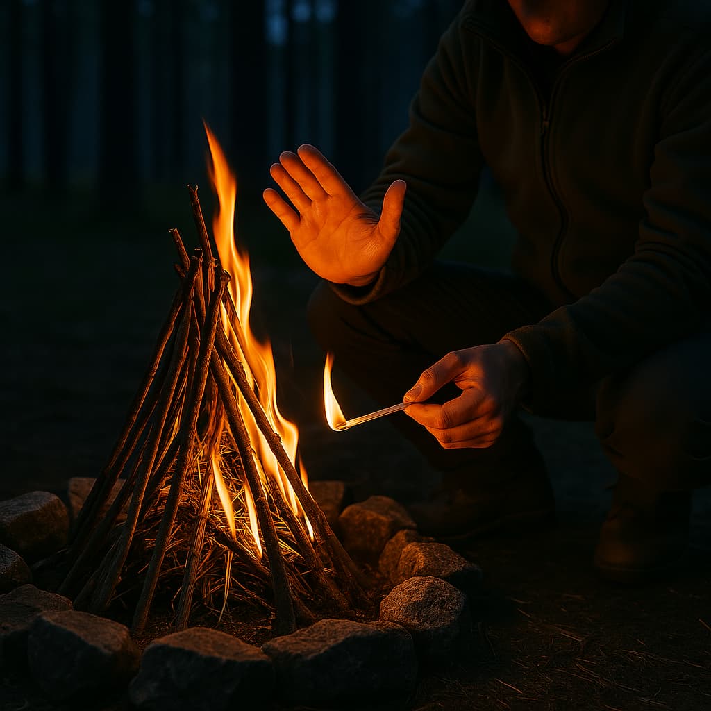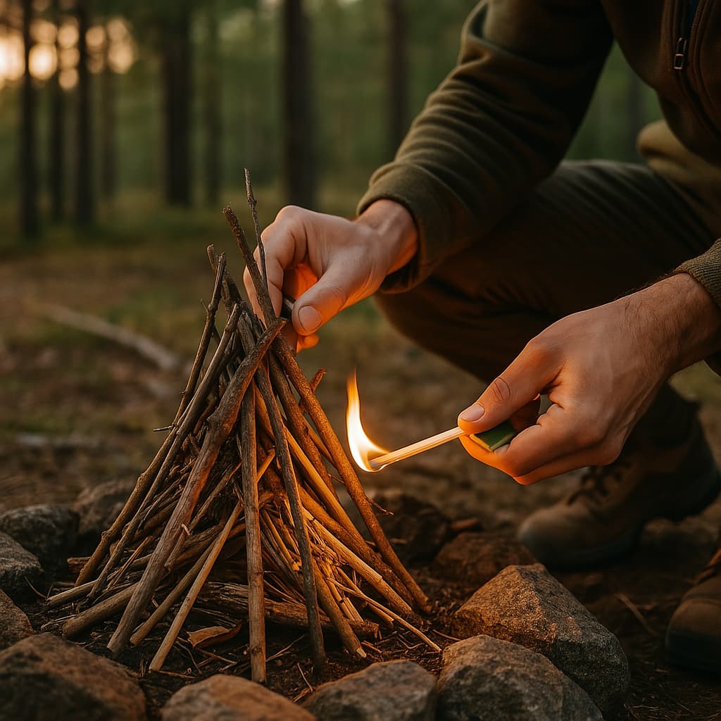 - در مرحله بعد از آتش زنه ها استفاده کنید، آتش زنه هر وسیله ای است که می تواند اولین شعله یا جرقه را برای تولید آتش ایجاد کند، از قبیل: کبریت، فندک، ذره بین. پس با استفاده از آتش زنه در دسترس، آتش گیرانه ها را روشن کنید.