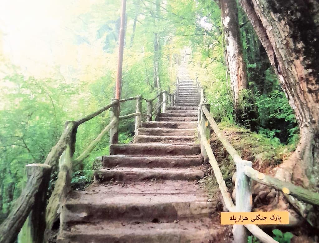 - مسیر پلکانی این پارک جنگلی، قبلاً چوبی بوده و اکنون به علت تخریب، به پله های سیمانی تبدیل شده است. تعداد این پله ها حدود پانصد عدد است، ولی در نظر گرفتن عدد هزار برای تعداد پله های این پارک، نشان گر کثرت است.