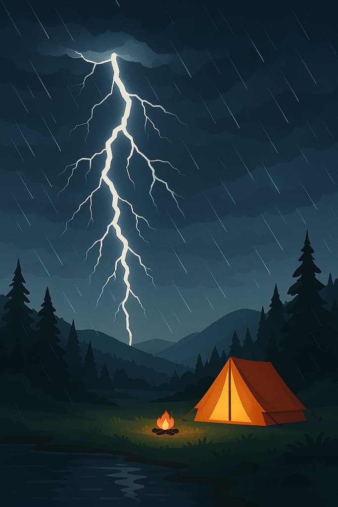 رعد و برق یک چشم انداز ترسناک دیگر از ایمنی و کمک های اولیه در کمپ برای بسیاری از کمپ نشینان بخصوص قایقرانانی است که به راحتی قادر به عقب نشینی به سوی ماشین نیستند . با وجودی که تعداد افرادی که با رعد و برق کشته میشوند بیش از هر پدیده آب هوایی دیگری است ، اما احتمال این که مورد اصابت قرار بگیرید بسیار کم است. اما با این حال ، بهتر است که آمادگی لازم را برای مواجهه با آن داشته باشید.