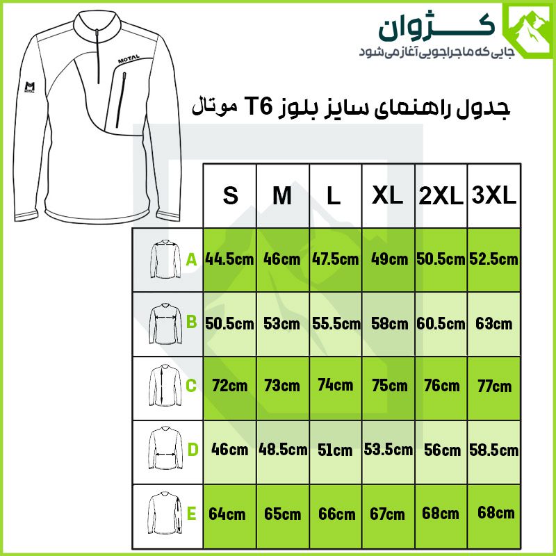 بلوز ترکینگ مردانه موتال مدل T6 از جنس پارچه تنفسی نرم و سبک است و از زیپ های YKK با کیفیت بالا در قسمت جلو بلوز و جیب استفاده شده است. پارچه آن دارای حفره های ریزی است که موجب خارج شدن بخار آب ناشی از تعریق از آن ها می شود و تهویه خوبی ایجاد می کند در فعالیت ها طولانی مدت احساس راحتی می کنید.مدل یقه آن ایستاده و نیم زیپ است که باعث تهویه و تنظیم دمای می شود و دارای یک جیب در قسمت جلو می باشد. به طور کلی این لباس یک بلوز نیم زیپ جیب دار است. این بلوز در چندین سایز و رنگ موجود می باشد. بلوز T6 همراه با کارت وارانتی دوخت، زیپ و پارچه عرضه می شود که از تاریخ خرید به مدت یکسال شامل وارانتی تعویض و تعمیر می باشد.