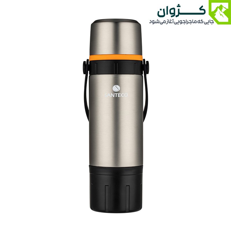 فلاسک دو جداره سانتکو مدل KAFE فلاسک یک ابزار چند کاره است. این محصول دارای بدنه استیل ضد زنگ 18/8 مخصوص نگهداری مواد غذایی است. این نوع استیل مقاومت خوبی در برابر خوردگی و زنگ زدگی دارد. این فلاسک دارای ساختار عایق دو جداره با عایق خلأ است که امکان حفظ دمای نوشیدنی های گرم را تا 12 ساعت و نوشیدنی های سرد را تا 24 ساعت فراهم می کند و در مدت زمانی طولانی طعم و بوی نوشیدنی را تغییر نمی دهد و برای نگهداری نوشیدنی ها ایدهآل است. اجزای پلاستیکی آن فاقد BPA هستند که ایمنی و سلامت شما را تضمین می کند.درب