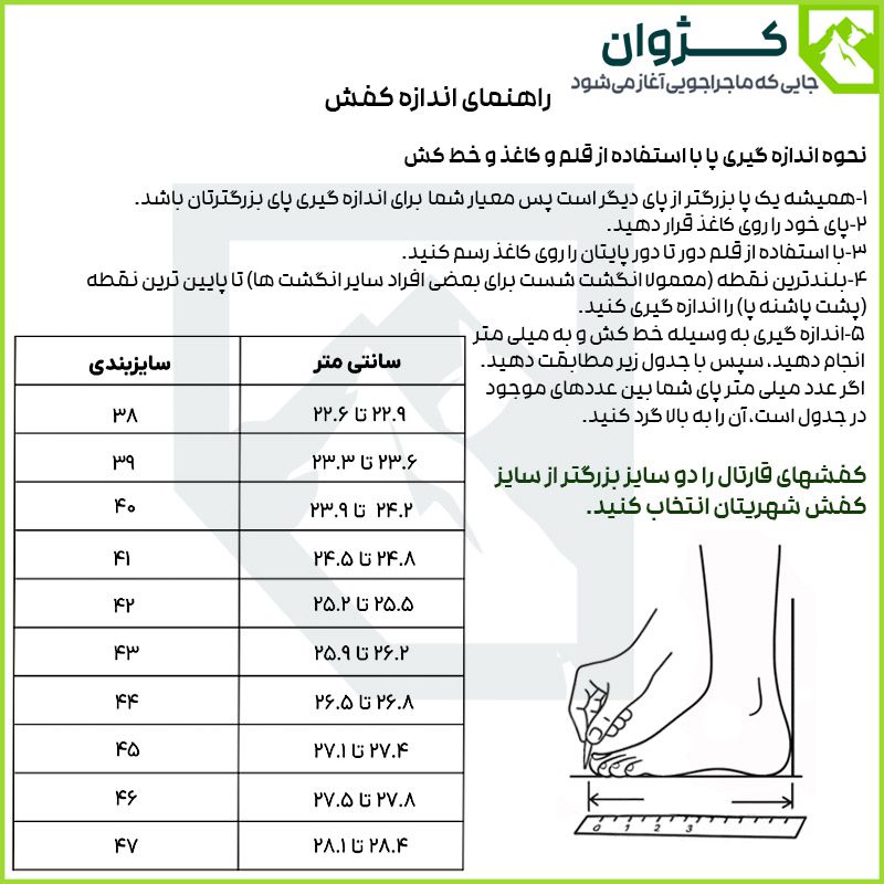 | سایز کفش | 39, 40, 41, 42, 43, 44, 45, 46 |